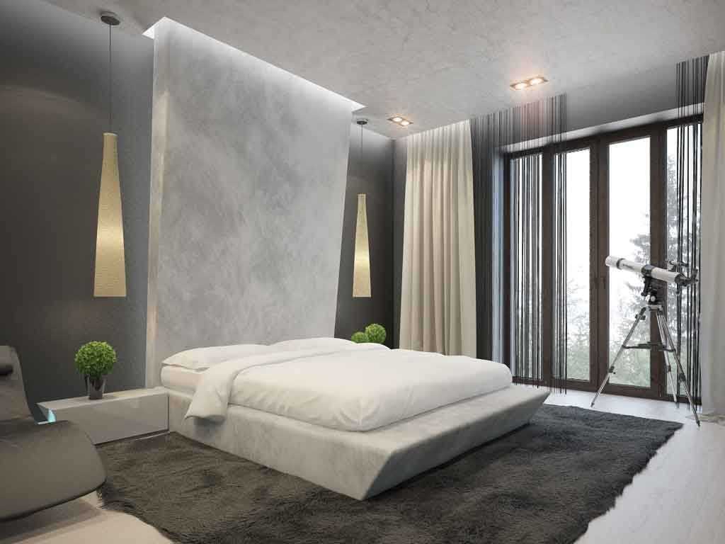Это самый оптимальный вариант для малогабаритной спальни. В нем напрочь отсутствуют любые излишества — никаких завитушек, узоров, декора или украшений. Один-два близких по спектру либо контрастных цвета в оформлении, идеально ровные, гладкие поверхности, четкая мебель, светильники простых геометрических форм — все это очень экономит пространство. Такое простое и современное решение понравится деловым людям с рациональным подходом к жизни.