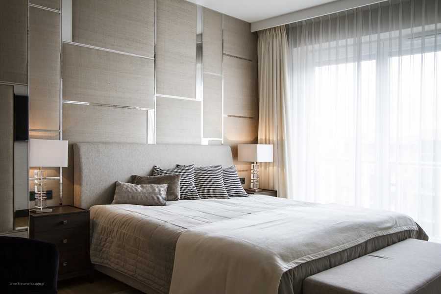 Месту для сна со слабым естественным освещением подойдут теплые тона светлых оттенков: бежевый и пудровый. В условиях излишка солнечных лучей прохладу подарят холодные цвета: серый, бирюзовый, мятный.