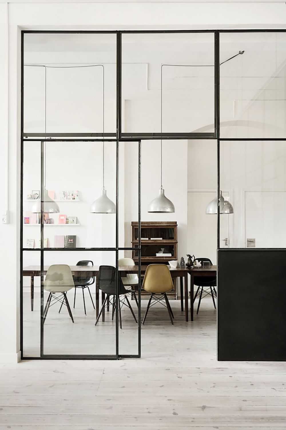 В частные интерьеры межкомнатные перегородки из стекла пришли из офисов и общественных заведений, где с их помощью создавали открытое, но в то же время четко разграниченное пространство с обособленными зонами. Подобное решение оказалось крайне разумным, ведь стены из стекла не «съедали» визуальный объем, пропускали свет от окон даже в отдаленные коридоры, все помещение оставалось на виду, при этом каждый кабинет или зона были отделены от общего пространства. Границы из стекла одинаково хорошо подходили как крупным офисам открытого типа, делая их более комфортными, так и небольшим помещениям, в которых сохранялся визуальный объем.