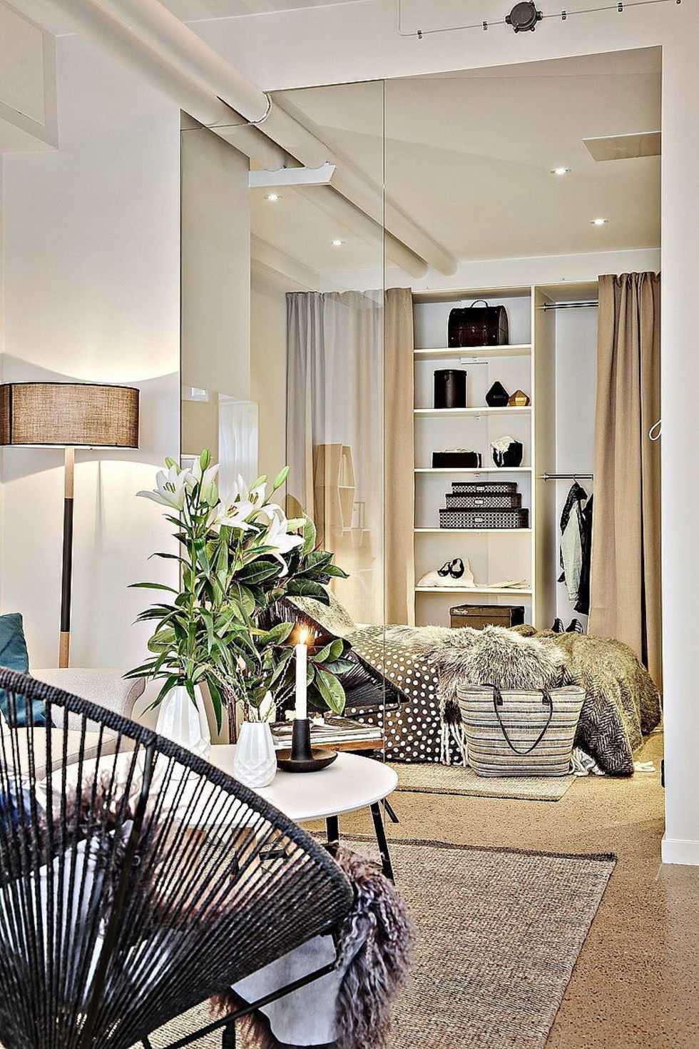 Отличный вариант для зонирования помещения — ниши. Здесь можно оборудовать спальное место или полноценную гардеробную, сэкономив деньги на приобретение шкафов-купе.