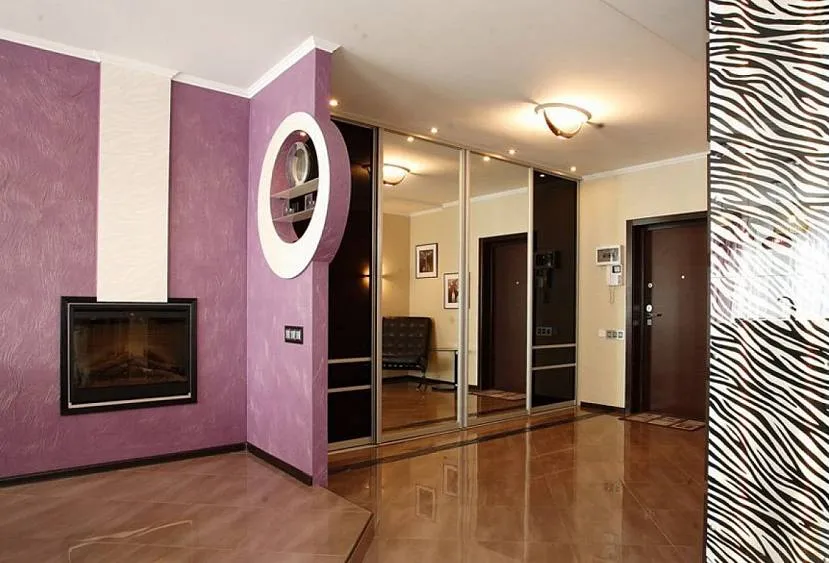 Перегородка из гипсокартона отлично делит пространство между гостиной и прихожей, яркая раскраска делает конструкцию притягательной и оригинальнойИсточник design-homes.ru