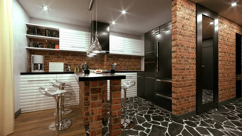 Кухня с кирпичной перегородкойИсточник remontkvartiri.su
