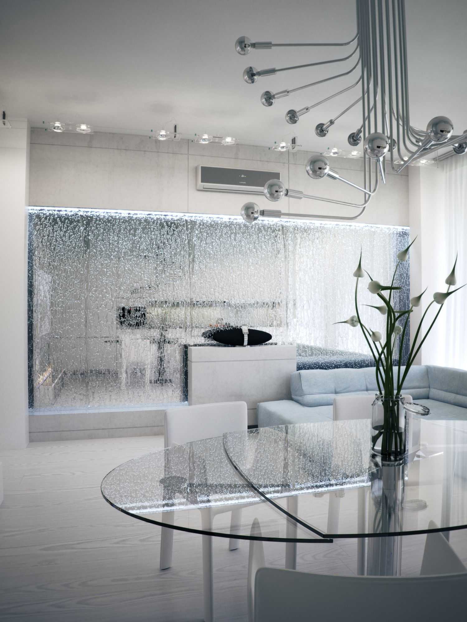 Стекло. Подходит для зонирования интерьера, оформленного в стиле хай-тек или других современных стилей. Преимущество этого материала – в эстетической составляющей, в возможности комбинирования матового, глянцевого стекла, что делает интерьер неповторимым и изысканным. Использование стекла позволяет сохранить достаточную освещенность помещения, где это необходимо