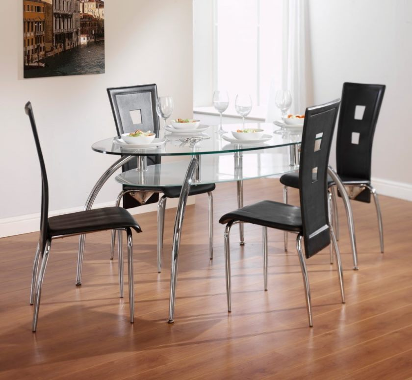 - Стеклянные обеденные столы не боятся ни высокого уровня влажности, ни высокой температуры. Так как для производства такой мебели используется закаленное стекло. Между прочим, такие столы еще пользуются огромной популярностью по той причине, что стекло считается универсальным материалом.