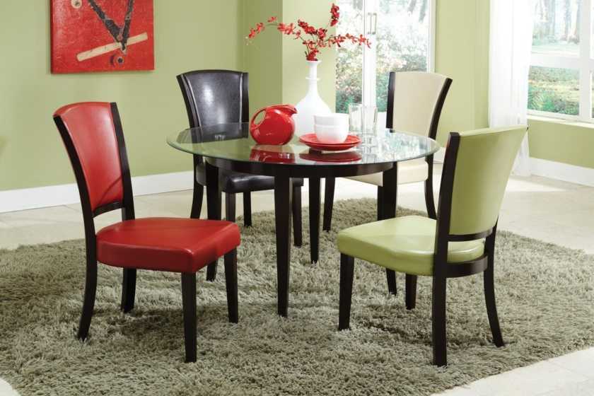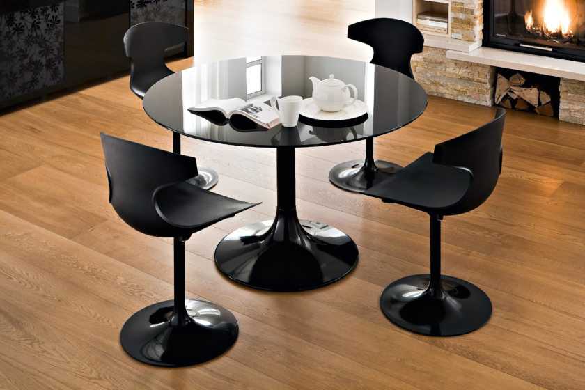 «Охлаждение» интерьера. Стекло отлично подходит для помещений, где всегда тепло или же окна выходят на солнечную сторону. Зимой холодная стеклянная поверхность не добавит уюта ни одному помещению. Поэтому, если вы все-таки отдали предпочтение именно такому столу, то можно постелить в помещении толстый ворсистый ковер или поставить деревянные стулья либо диванчик с тканевой обивкой.