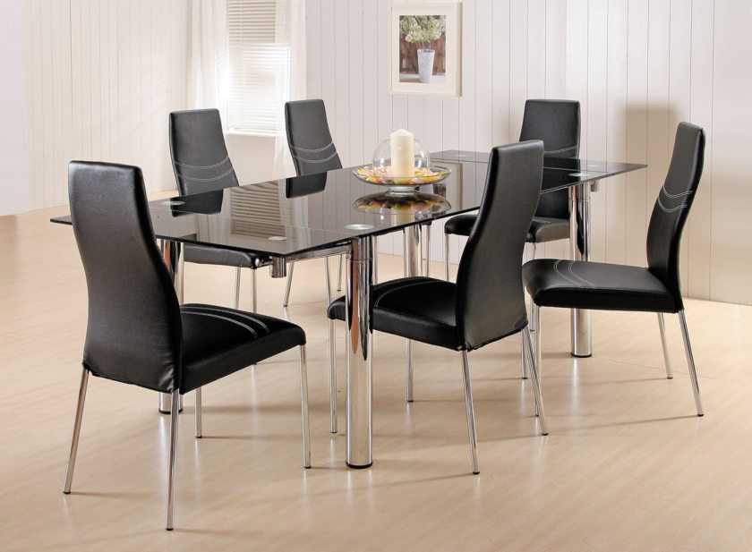 Раздвижной стеклянный кухонный стол со столешницей черного цвета придаст помещению более элегантный внешний вид.