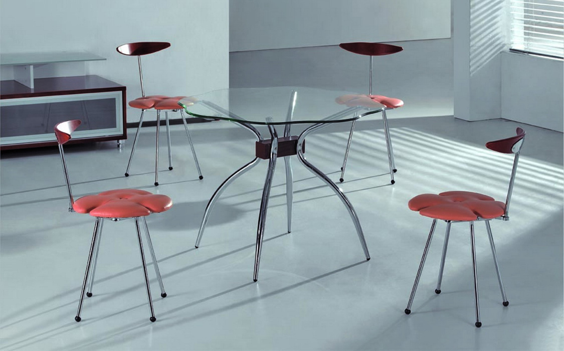 Стеклянный стол имеет важную особенность. Она состоит в визуальном облегчении конструкции, зрительно разгружает пространство, поэтому такое изделие просто находка для малогабаритной кухни.
