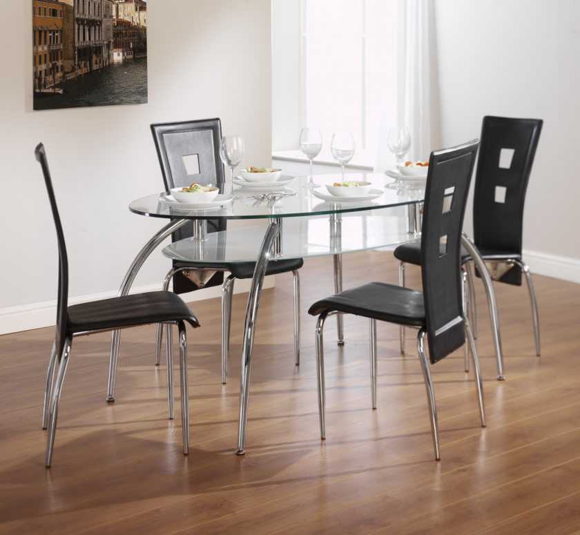 Кухонный стеклянный стол представлен различными формами и размерами.