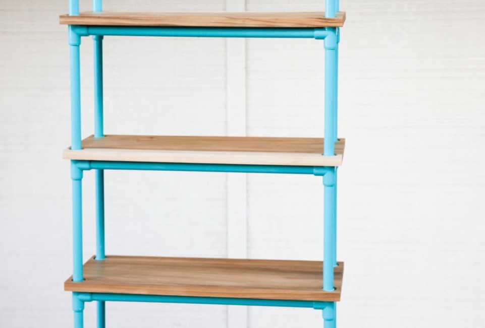 Основу каркаса изготавливают из труб ПВХ. Элементы соединяются между собой соединителями с 4 отводами. Первоначально собираются полки стеллажа. В них проделываются отверстия, незначительно превышающие диаметр труб. Места соединения труб смазываются клеем.