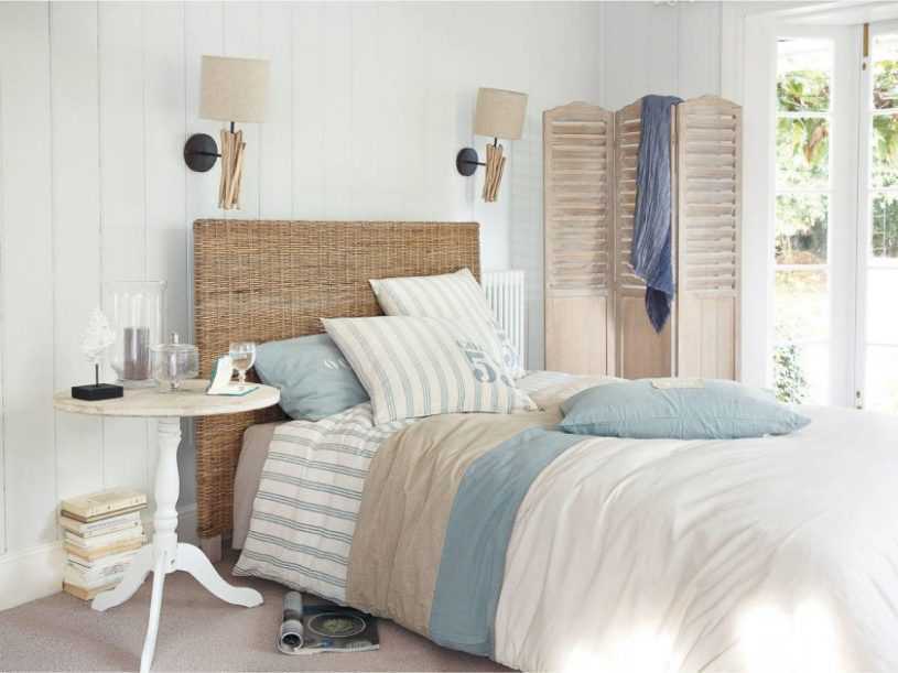 Морской Прованс. Вы почувствуете себя на берегу Средиземного моря. Выбирайте белую потрепанную мебель, постельное белье, покрывала и аксессуары.