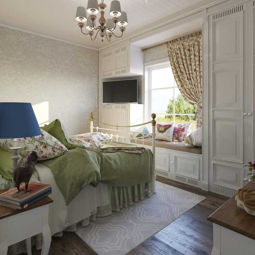 Дорогим вариантом отделки стен станут светлые деревянные панели. Но маленькая спальня в стиле прованс при таком оформлении может стать еще меньше за счет использования обрешетки.