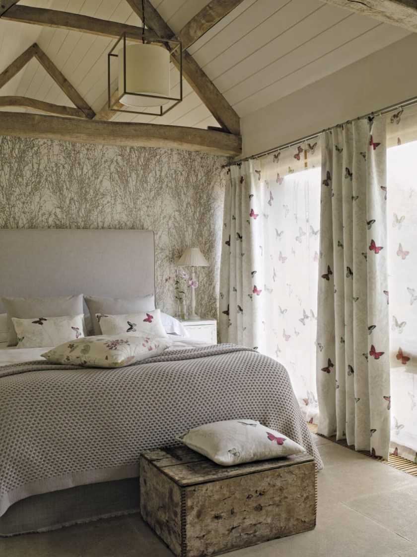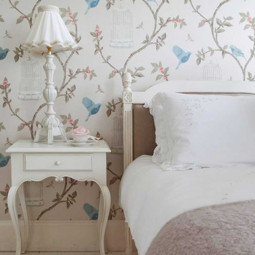 Обои в стиле прованс для спальни по-прежнему остаются самым востребованным и популярным вариантом создания уютного помещения для сна. Для комнаты отлично подойдут недорогие бумажные обои или более дорогая отделка из текстиля.