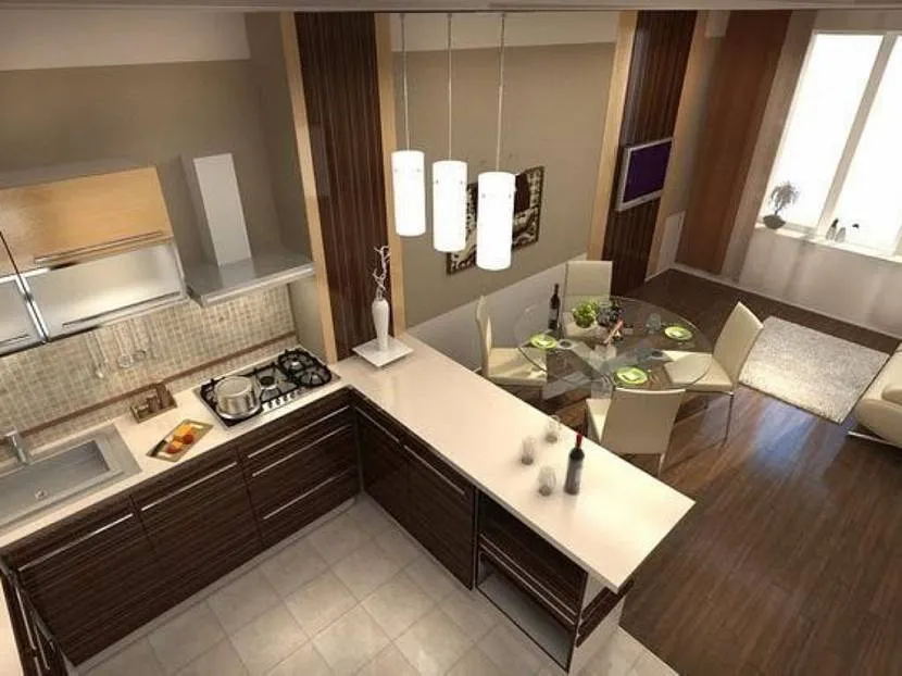Тенденция совмещения кухонь со смежными комнатами не теряет актуальности. Ведь для того, чтобы обустроить и кухню, и гостиную в одной комнате, необязательно ломать перегородки.