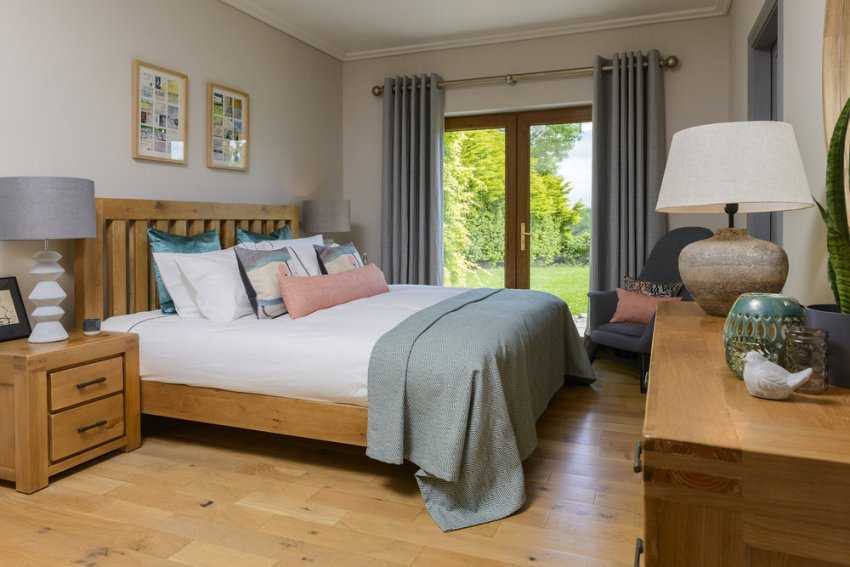 Для спальни отлично подойдёт длинная тяжёлая портьера на люверсах. Она станет надёжной преградой для солнечных лучей, благодаря чему вы сможете беззаботно погрузиться в отдых. Выбирайте спокойные пастельные тона, потому что яркие цвета раздражают глаза и мешают сну.