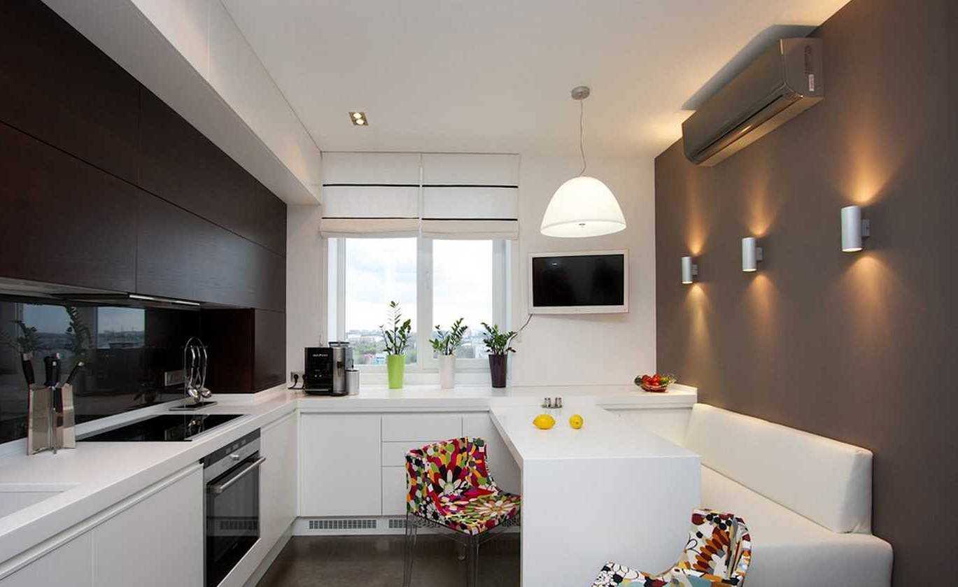 Какого бы размера ни была кухня, ее стараются зонировать хотя бы на два участка — столовую и кухонное пространство. Освещение — отличный способ зонирования. Рядом с обеденным столом размещают две настенные лампы, а над зоной приготовления пищи устанавливают точечные светильники.