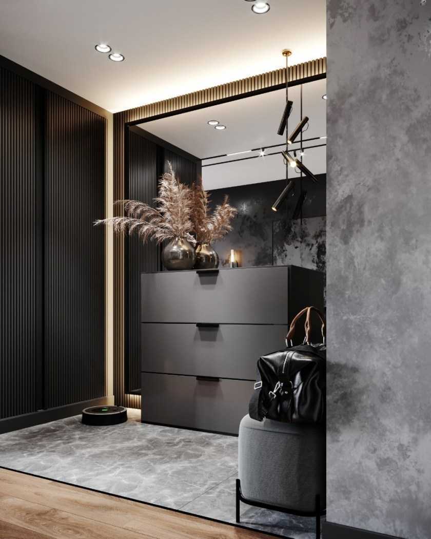 Не стоит недооценивать дизайн этого помещения и считать его проходным. Именно благодаря такой его особенности удастся реализовать нестандартные и даже смелые идеи. Необходимо учитывать дизайн квартиры или дома в целом, потому что именно прихожая в серых тонах, как на фото, станет связующим звеном. Чем более гармоничным окажется пространство, тем более выгодно будут смотреться все комнаты в целом.