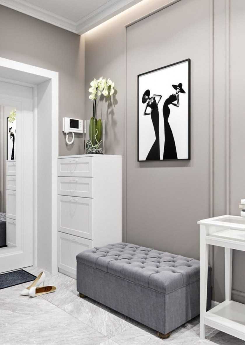 Почему-то серый цвет у многих людей ассоциируется с хмурым и мрачным однообразием, скукой, рутиной, казенным оформлением. Но на практике 50 оттенков серого помогут внести в прихожую дополнительный уют или придать яркость всем остальным элементам оформления.