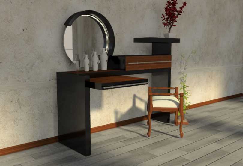 - Раскладной столик – простая система, состоящая из раздвижной столешницы с прокручивающимися ножками и откидного зеркала. Такой вариант также будет полезен людям, часто меняющим жилье.