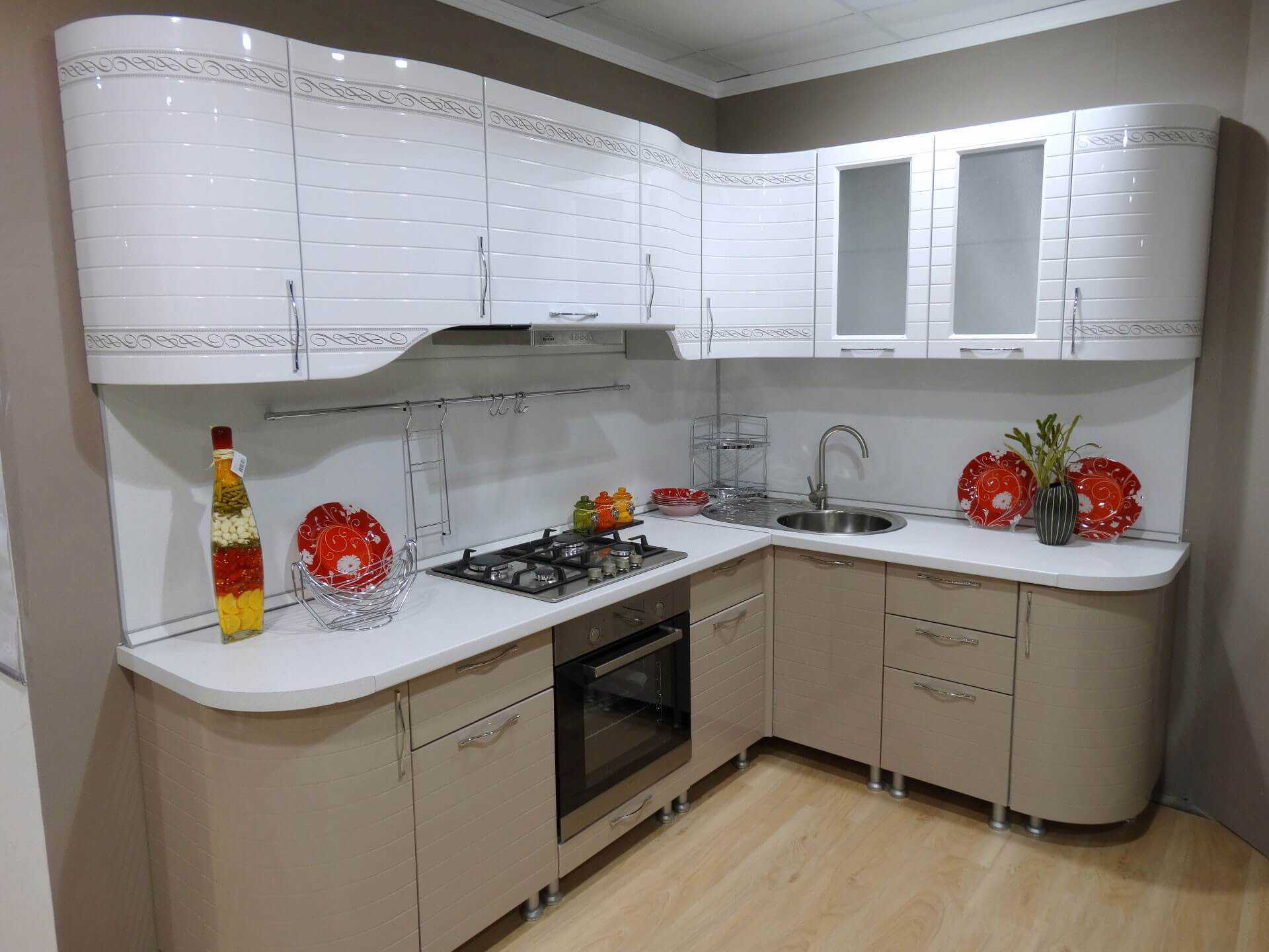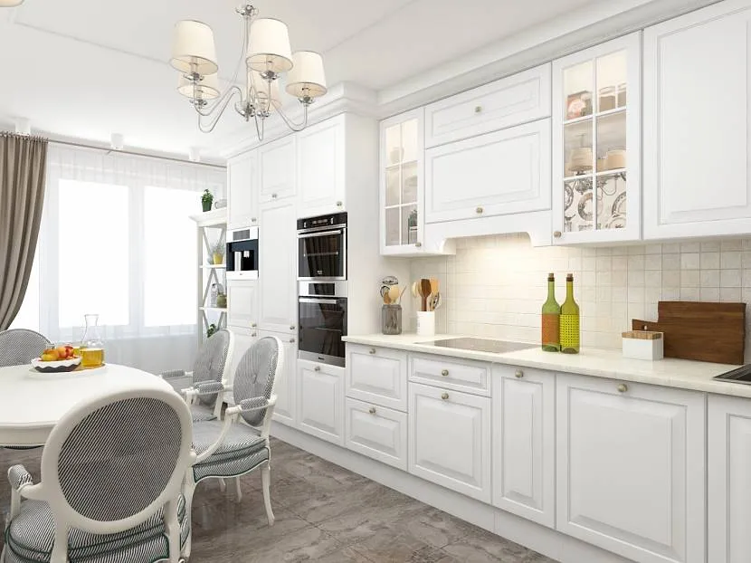 Выбор конфигурации кухни с белыми фасадами зависит от размера помещения и планировки.