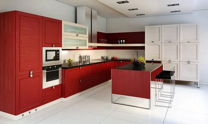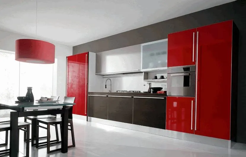 Красный цвет в интерьере кухни