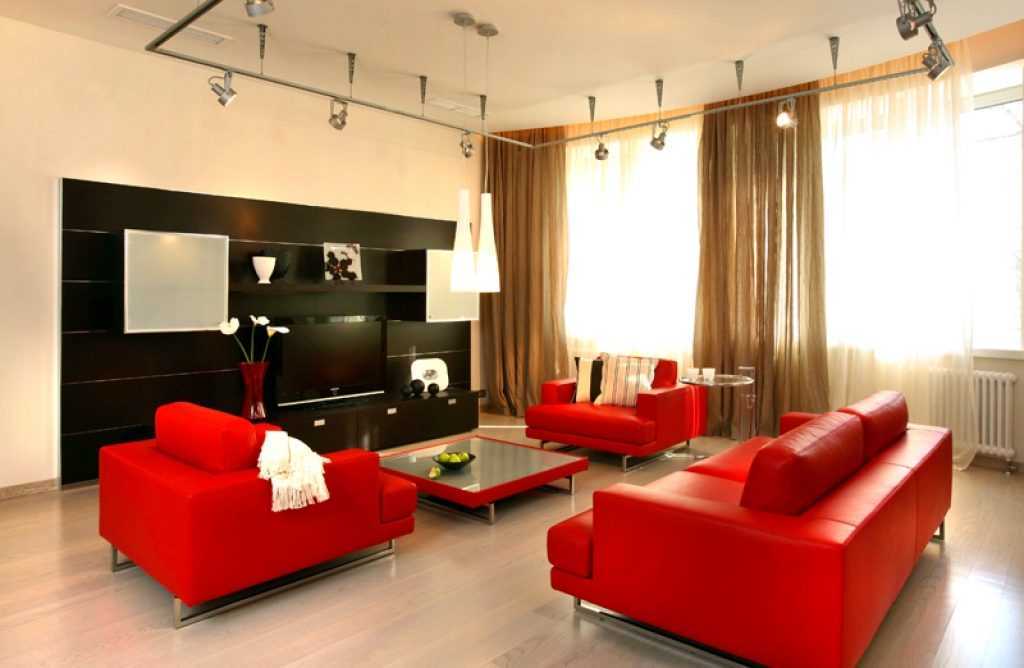 Красный цвет в интерьере гостиной
