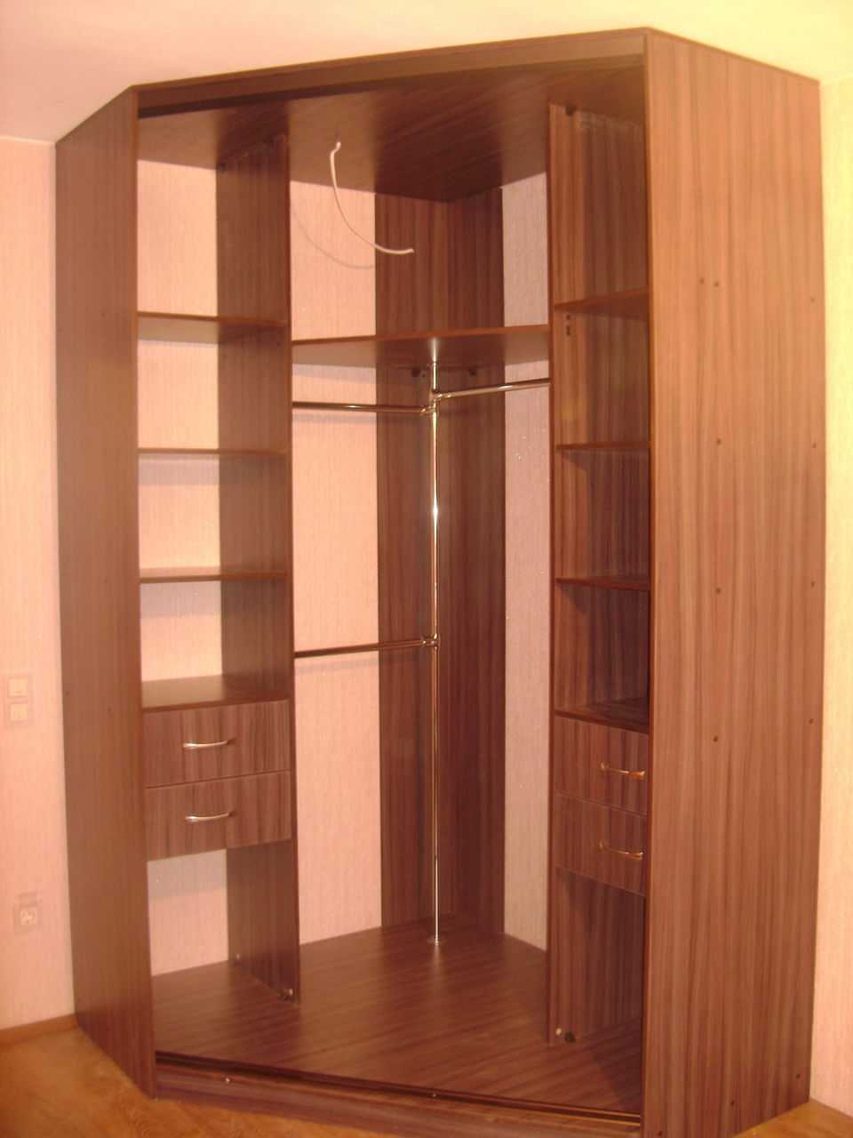 Опытные дизайнеры рекомендуют угловую гардеробную разделить на несколько зон.