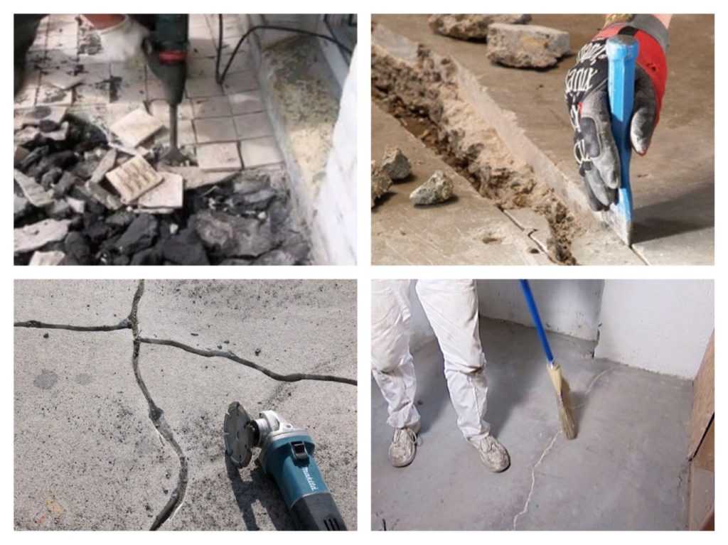 Если капитально взяться за плиту, то желательно полностью демонтировать покрытие пола, но это делается только в том случае, если в будущем планируется его утеплить или установить под ним отопление. Без демонтажа проверить состояние плиты и усилить её практически не возможно, а это в свою очередь создаёт дополнительный риск обрушения.