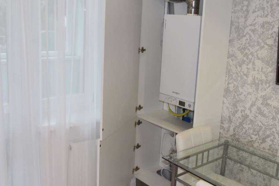 Проще всего решить вопрос о том, как закрыть котел на кухне, можно, если кухня находится в стадии ремонта. В этом случае проще заказать мебельный гарнитур, габариты которого позволят установить оборудование незаметно и безопасно.