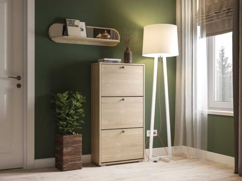 В продаже есть очень узкий обувницы с откидными полками и похожего формата тумбы. Но выбирайте модели без ножек, которые либо подвешиваются на стену, либо полностью ложатся на пол