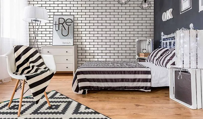 Ламинат — относительно свежий вариант отделки стен под кирпичную кладку, но он активно набирает популярность. Преимущества такого выбора — простой монтаж, универсальность материала и легкий уход за панелями. Ламинат не боится влаги, он антистатичен, не выделяет вредных веществ и не забирает полезное пространство комнаты при установке непосредственно на стену. Способ монтажа зависит от вида креплений.