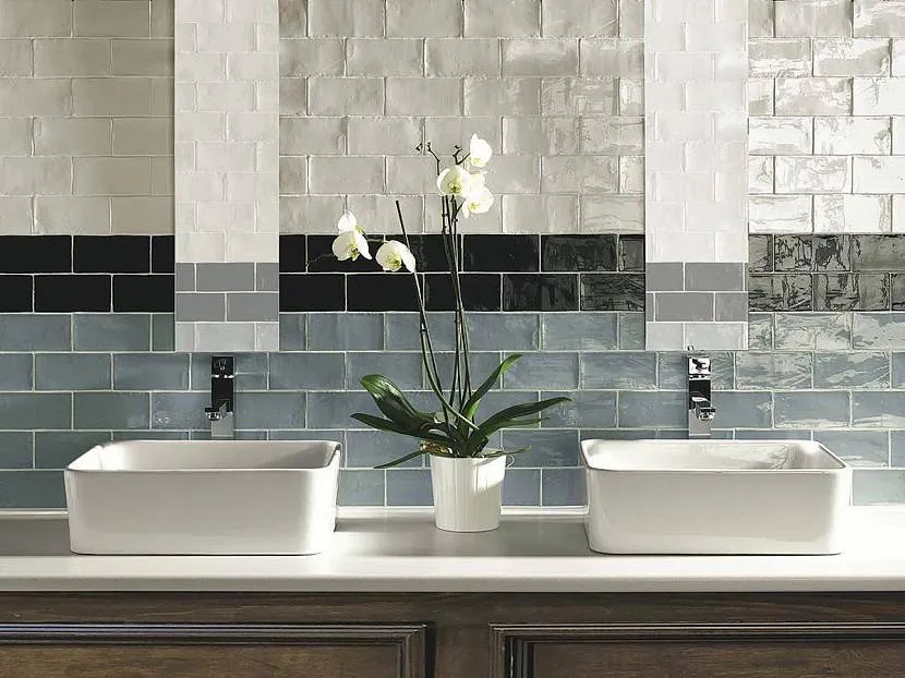 В компактных ванных комнатах лучше применяйте материал с глянцевой глазурованной поверхностью.