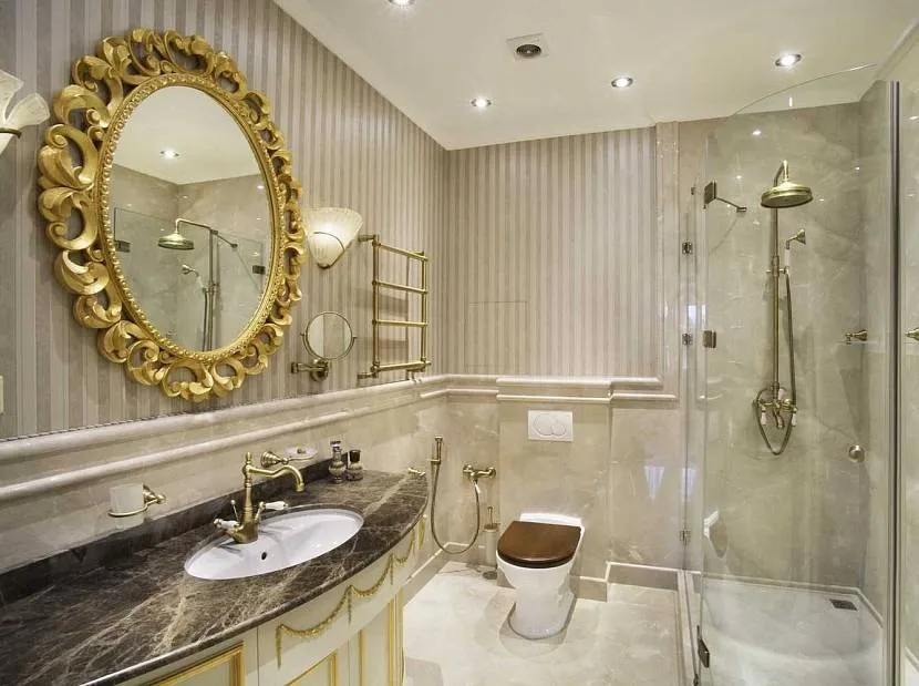 Плитка в ванную комнату, выполненную в классическом стилеИсточник kukupe.ru