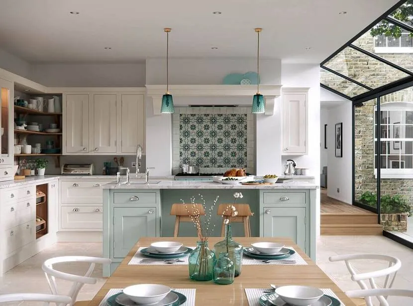 Цветовая гамма кухонь в этом году смещается из синей палитры в зеленую ― на пике моды глубокие изумрудные, лесные и мшистые тона, а также элегантные мятные и яблочные.