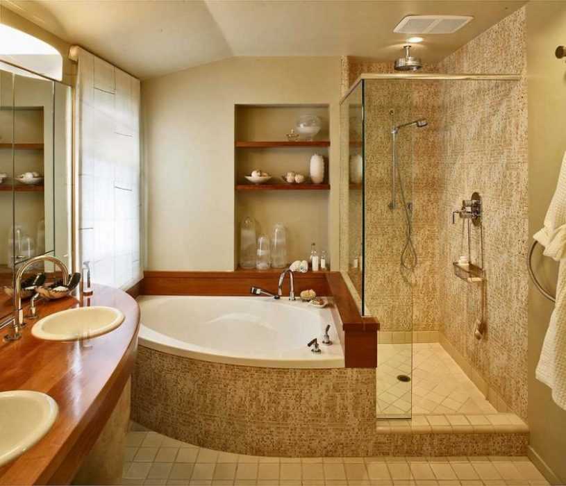 Угловая ванная Источник dekormyhome.ru Если используются электроприборы, то нужно обеспечить розетки для подключения, защищённые от попадания влаги. В доме, где есть маленькие дети, должна быть исключена возможность их поражения электрическим током.