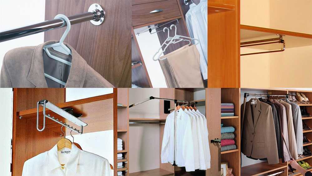 Это все приспособления, которые используют при наполнении шкафов-купе. Главное — правильно их разместить, определить размеры секций и дверей.