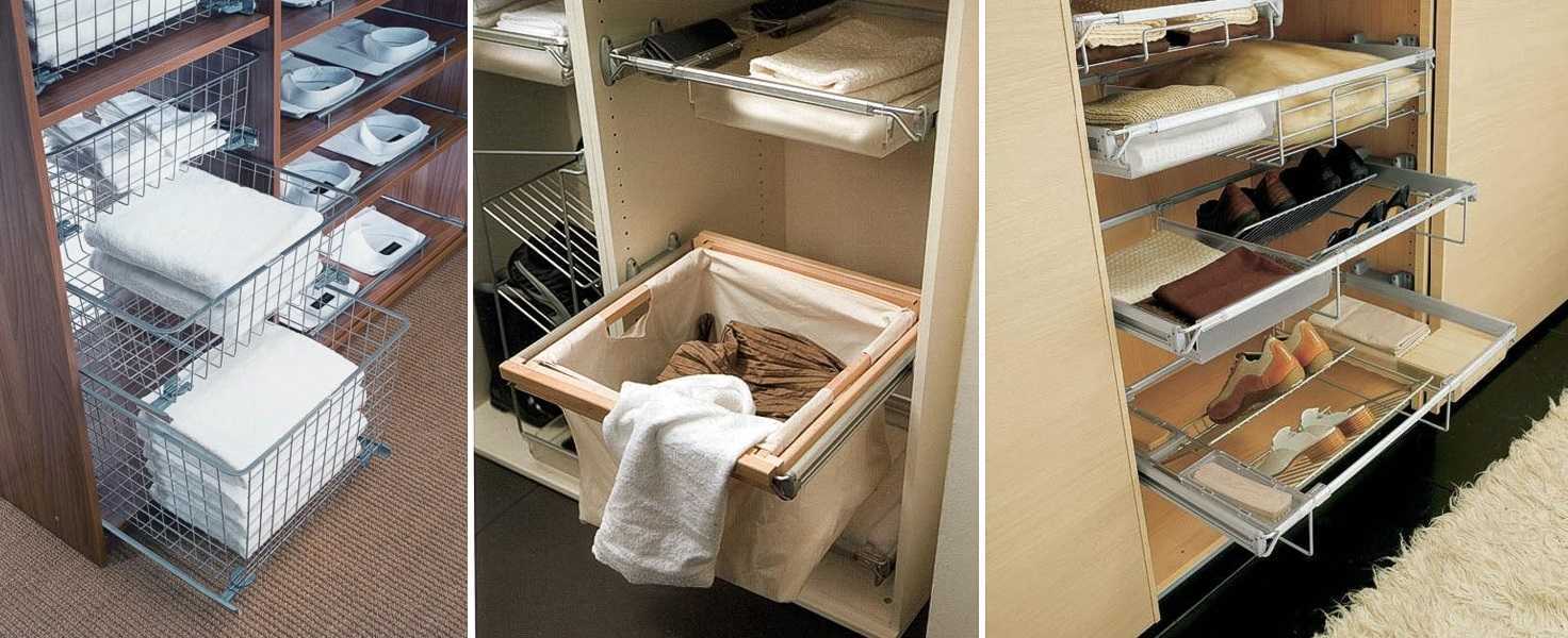 Без корзин или выдвижных ящиков шкаф купе не такой удобный