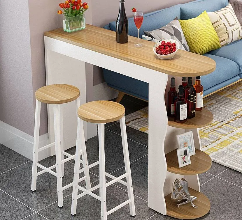 Популярны многоуровневые барные стойки, которые являются многофункциональными. Одну их сторону используют как рабочую поверхность, а другую – как место для перекусов и приема напитков.