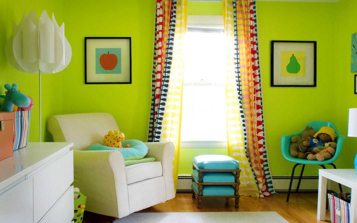 - Светло-салатовый цвет стен понравится детям и подойдет для детской спаленки, зеленый цвет успокаивает, а значит ваш малыш будет хорошо спать.