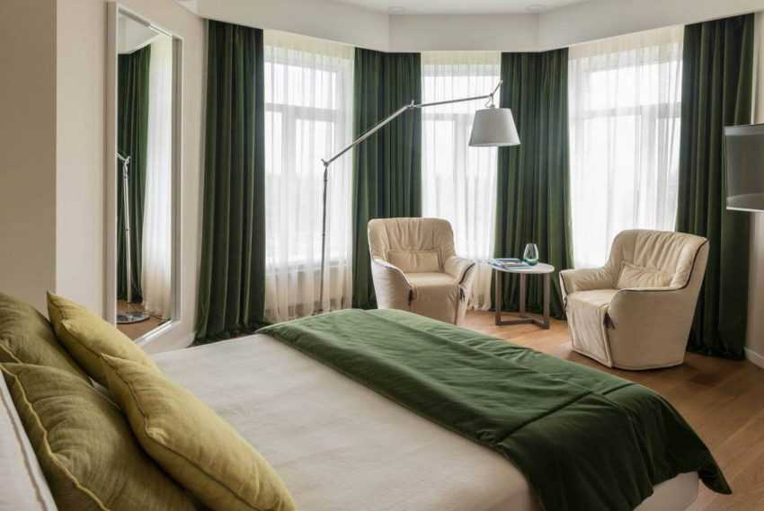 С какими стилями сочетаются изумрудные шторы в интерьере спальни