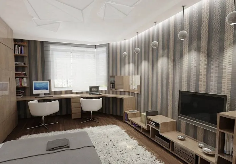 Например, если комната имеет прямоугольный вид, то ее легче будет разделить на зоны, чем комнату квадратной формы, так дизайн комнаты зонированием нужно продумать лучше.