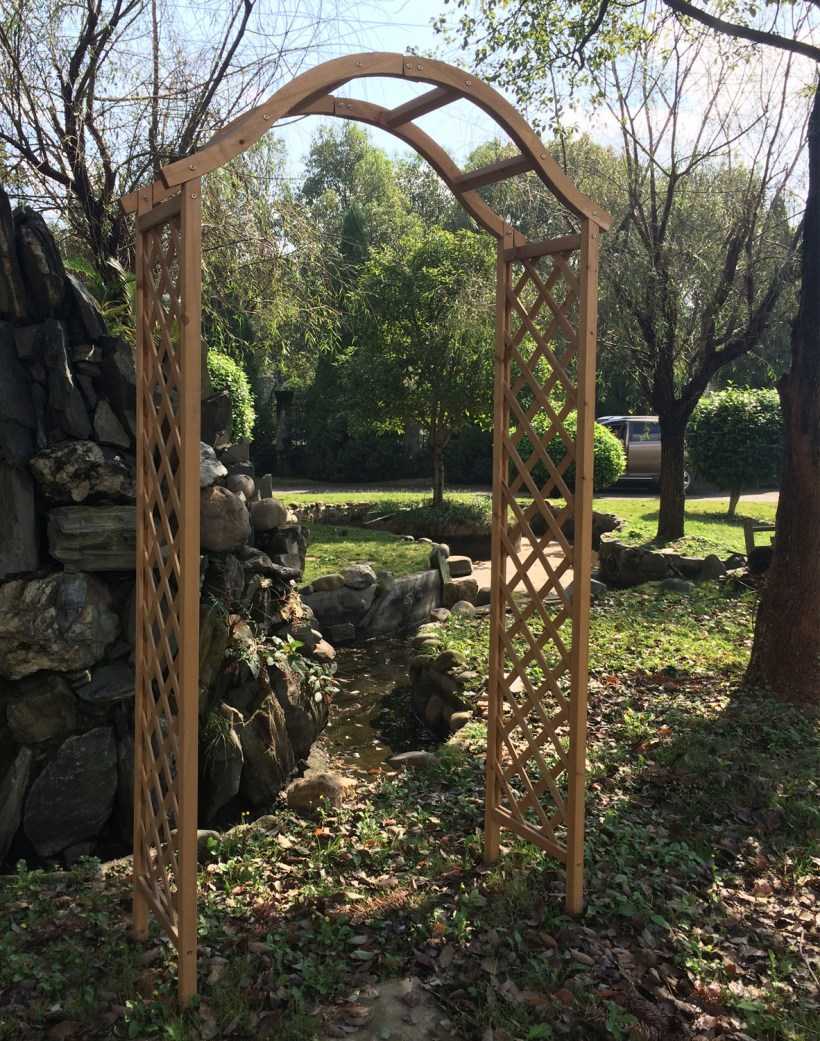 Единственным недостатком станет относительная недолговечность древесины. Увеличить срок службы арки из дерева помогут качественный отбор компонентов и использование специальных пропиток