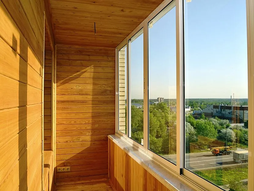 - Обшивка балкона евровагонкой.