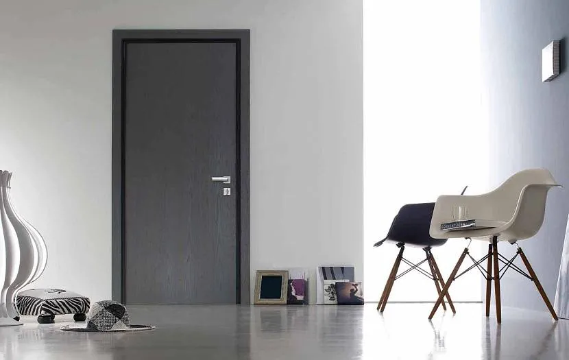 - В помещении, с декором металлических оттенков или с такими элементами хорошим выбором станет межкомнатная дверь серого цвета.