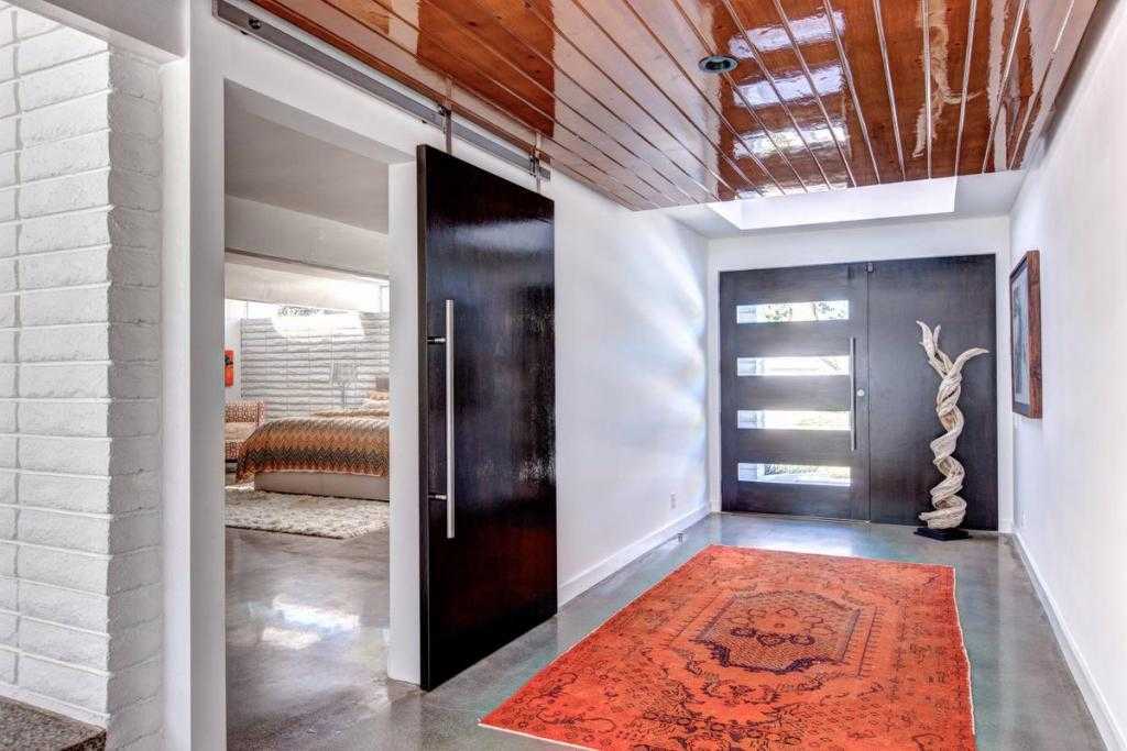 Сырье востребовано за счет своей объемной фактуры. Акриловый материал отлично моется. Для небольшого помещения с черными дверными проемами подойдет холодный оттенок стен. Если комната большая, на фоне темных дверей замечательно смотрятся яркие стены.