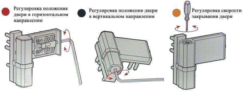 В случае неплотного прилегания двери, необходимо провести регулировку эксцентриков. Это выполняется с помощью подходящих шестигранников, иногда могут понадобиться пассатижи. Сзади двери регулировка производится с помощью специальных винтов, которые располагаются на нижних и верхних петлях. Чаще всего вместе с данной фурнитурой при ее установке имеется инструкция по регулировке. Но в случае ее отсутствия не стоит отчаиваться, так как обычно этот процесс не вызывает никаких проблем и сложностей.