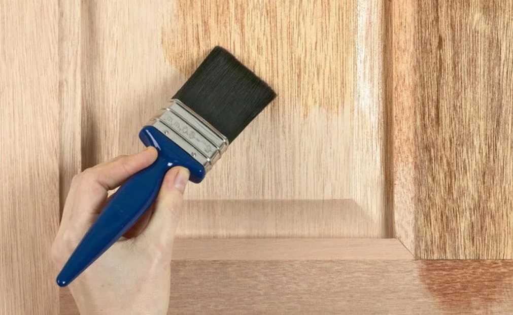 Прежде чем, как покрасить деревянную дверь морилкой и обработать ее сверху лаком, поверхность необходимо хорошо смочить водой. Это необходимо проводить вместо грунтования. Такая процедура повысит проницаемость морилки глубоко в структуру древесины.