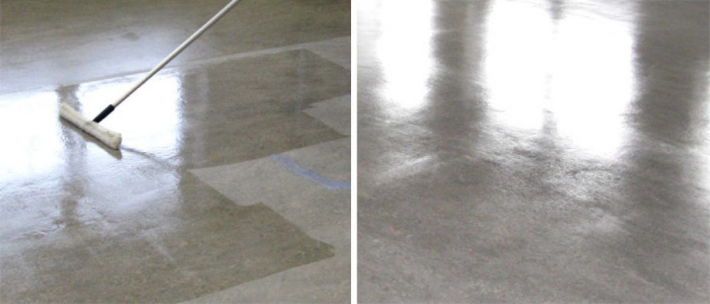 - Нанести на поверхность пола специальный раствор, который вступая в реакцию с бетоном, образует защитную пленку.