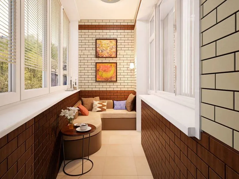 - В отличие от привычной вагонки или плит МДФ, плитке не нужна обрешётка. Это не только экономит средства, но и сохраняет обычно не слишком большую площадь балкона или лоджии.