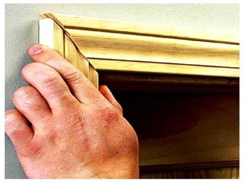 Если коробка выступает за пределы стены, помогут рубанок и деревянные наличники. Технология простая: с тыльной стороны отмечается размер коробки, после чего рубанком с обратной стороны наличника выбирается четверть. Работать нужно не спеша, постоянно контролируя процесс выборки углубления под коробку.