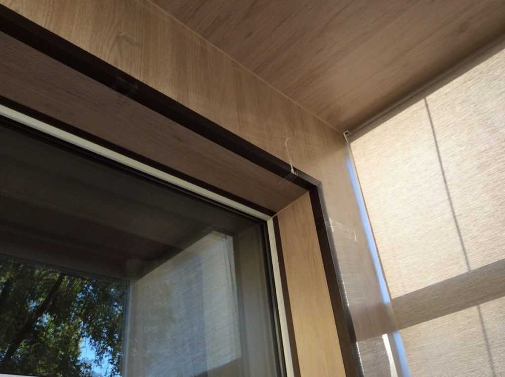 Закрепив по верху профиль ПВХ, можно переходить на боковые поверхности. Здесь производится аналогичная работа – замер, отрез, фиксация. На нижнюю часть рамы профиль не крепится, здесь откос заменяет подоконник.